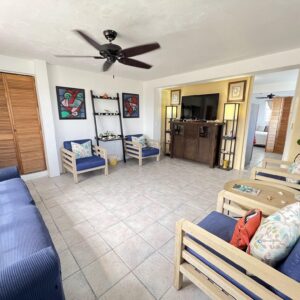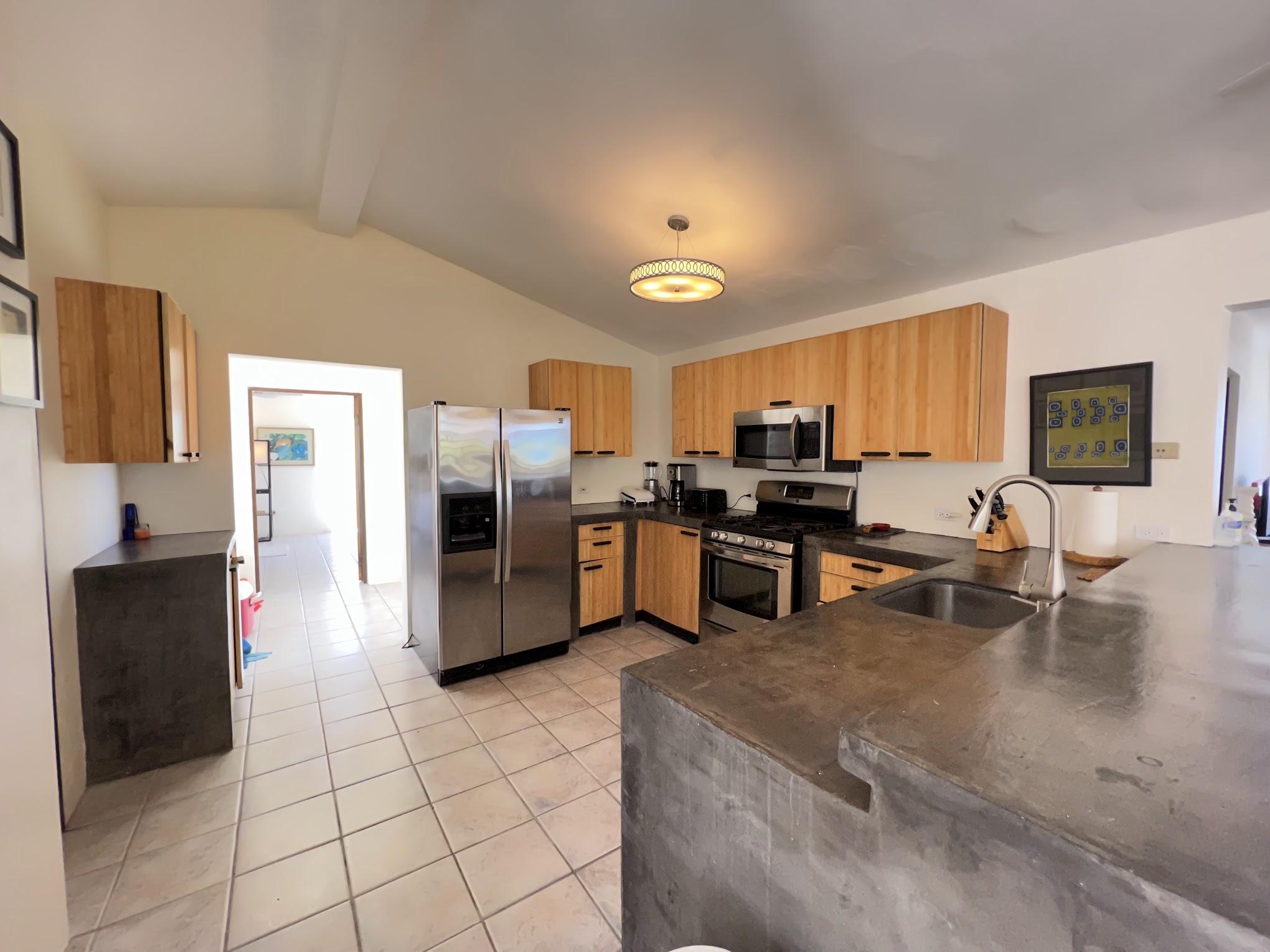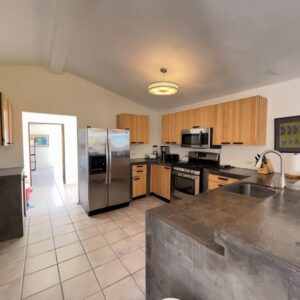 The home consists of three separate apartments. The main level features a 2-bedroom, 2 and a half bath unit. The ground level offers a 1-bedroom apartment, and a separate stand-alone casita provides an additional full 1-bedroom unit. All units are fully furnished and outfitted.